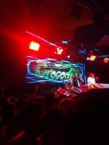 00h. É hora do show começar. Vemos, enfim, as “estrelas” da noite em cima do crocodilo gigante. Luzes no meio do público, fumaça saindo da boca do “animal, fogos e muito agito comandado pela dupla DJs da festa de aparelhagem. O Show começou. É tudo muito personalizado, a festa começa com um diálogo musicado feito por produtores musicais, e nesse dialogo é possível identificar uma conversa de um personagem da aparelhagem com os DJs. Esse personagem é conhecido como o “Barba Negra”, e é ele quem anuncia o começo do show com falas descontraídas para animar ainda mais o público, os DJs, então, conversam com o Barba Negra até que o vasto reportório musical comece a ser tocado.